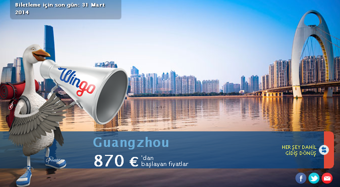 Guangzhou Promosyon Uçak Bileti / Kalkış Şehri : İstanbul